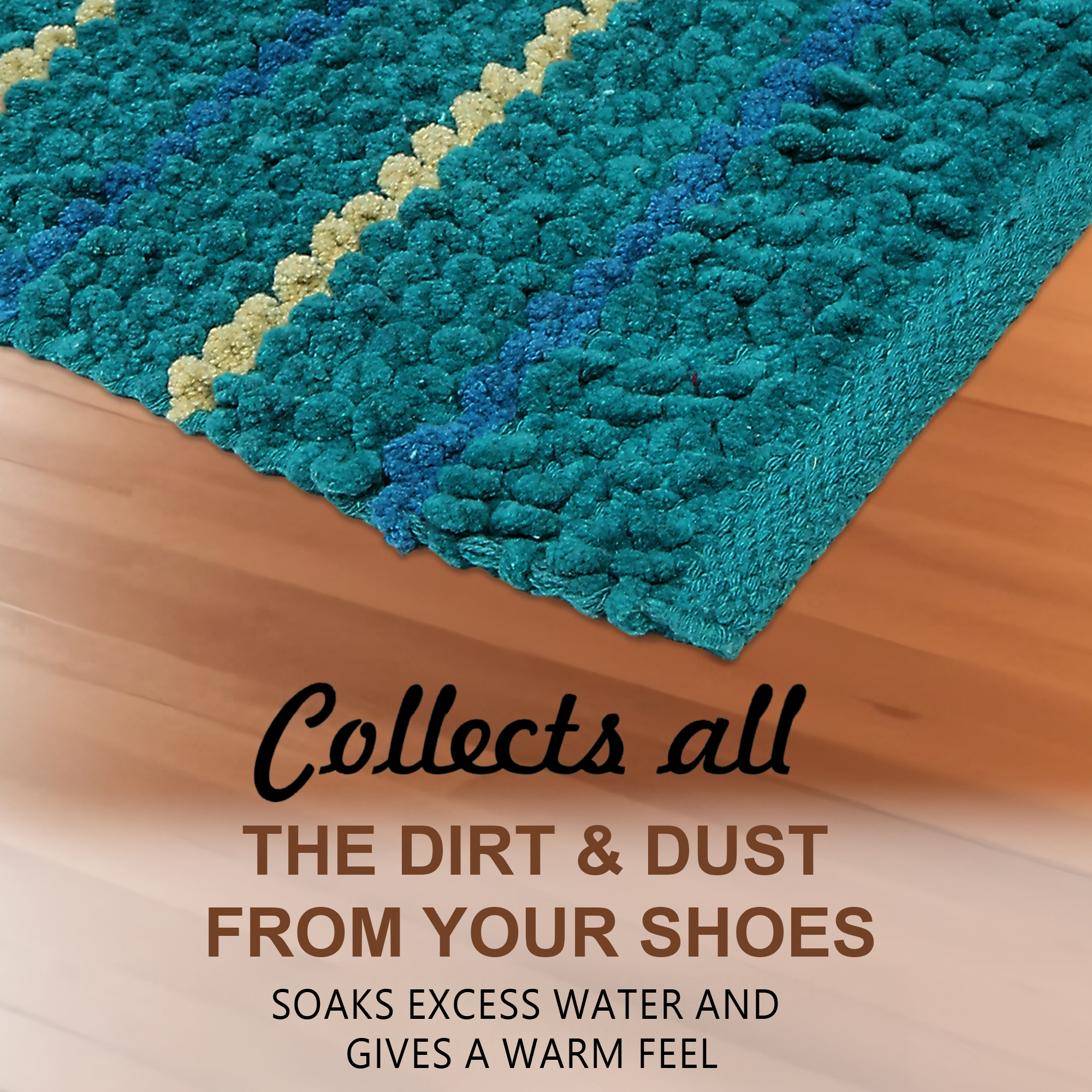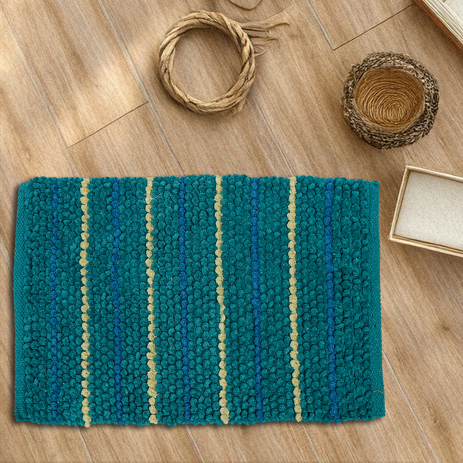 Transform your living space with this stylish striped bath mat in elegant green and beige tones. The thoughtfully designed pattern adds a touch of sophistication while serving multiple practical purposes. Made from high-quality washable fabric, this versatile mat effectively absorbs water, making it perfect for bathrooms, kitchen entrances, or any area prone to moisture. The durable construction traps dirt and debris from shoes and feet, helping maintain cleanliness throughout your home. The soft, comfortable fabric provides a pleasant feel underfoot while being remarkably easy to maintain. Its low-maintenance nature means simple washing keeps it looking fresh and vibrant. The mat’s versatile design complements various interior styles, seamlessly blending with your home’s aesthetic. Whether placed in your bathroom, kitchen, or entryway, this multi-purpose mat combines functionality with style. The alternating green and beige stripes create a visually appealing pattern that adds depth and character to your floor space. Experience the perfect balance of practicality and aesthetics with this premium quality mat that enhances your daily living experience.