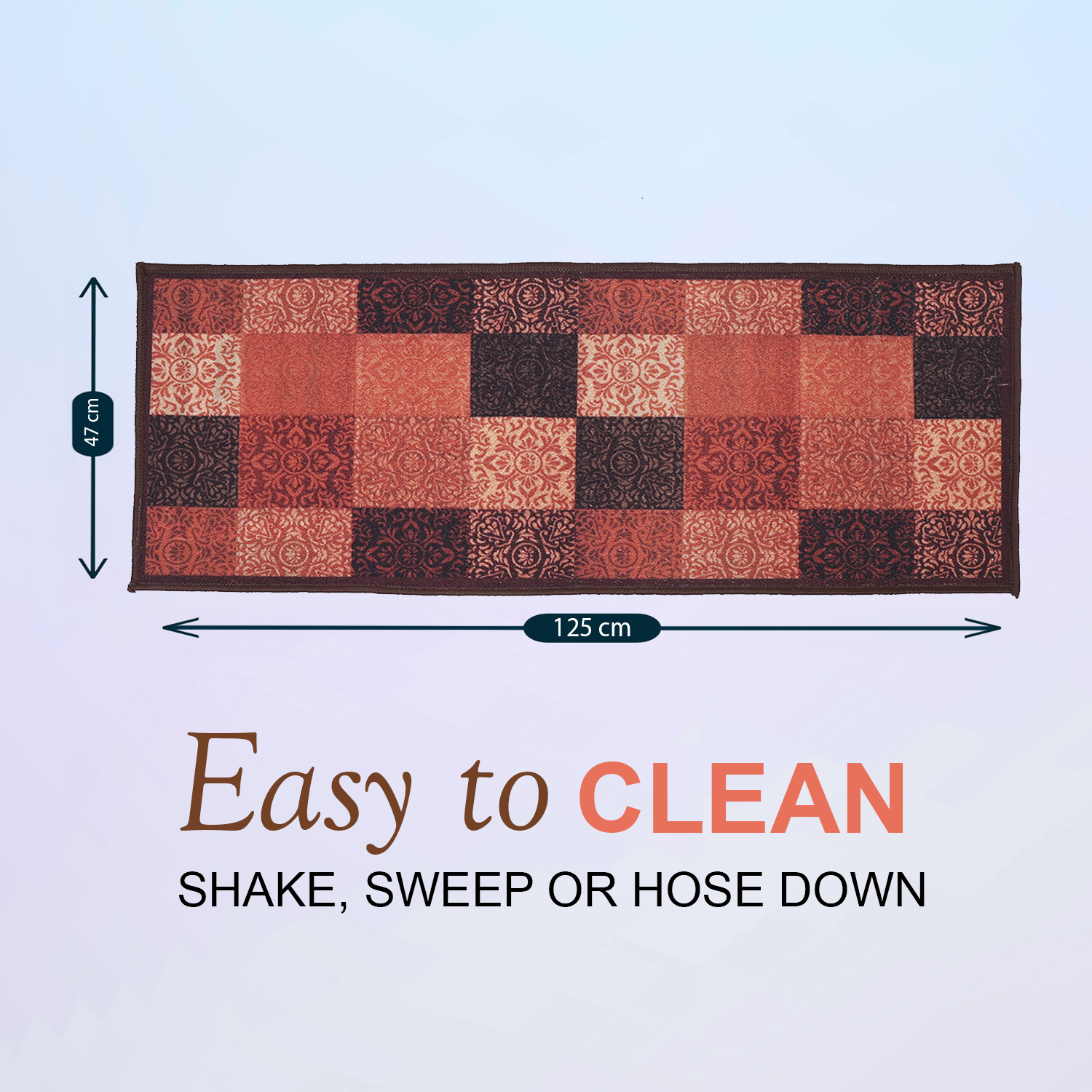 Upgrade your home with this multipurpose runner rug featuring a durable, anti-skid backing and smart, colorfast design. Whether used as a kitchen floor runner, bedside runner rug, mandir mat, dining area runner, or hallway carpet, it delivers style and safety wherever placed. The non slip rug keeps you secure on any surface and the anti-static fibers stay vibrant and clean with simple brush cleansing. Designed for high traffic and everyday convenience, this runner is machine washable and super easy to maintain. Transform your space with a soft, long runner rug ideal for bedrooms, corridors, dining rooms, kitchens, and even prayer areas?a modern solution for all your home furnishing needs.